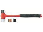 鉄平・鉄凸・ナイロン・真鍮の4種のヘッドがセットになったハンマーです。ヘッドを交換できます。鋼の芯材により、木柄の3倍の耐久力を実現しています。本体は耐衝撃性プラスチックの一体成型でハンマーの頭部が抜けず、安心です。
