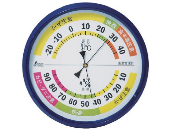 シンワ 温湿度計F-4 生活管理 丸型15cm ブルー 70503