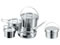 ●メーカー:キャプテンスタッグ●型番…M−5504●[セット内容]…鍋(大)鍋(小)フライパン ケトルクッカー ×各1●サイズ…鍋(大):φ210×130(H)mm(4L)鍋(小):φ170×100(H)mm(2L)フライパン:φ220×45(H)mm、ケトルクッカー:φ125×90(H)mm(900ml)●収納サイズ…220×150(H)mm●材質…本体・フタ・取っ手:ステンレス鋼 収納袋:ポリエステル●重量…2kg●取っ手、収納袋付