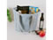 外側に大きめのポケットとサイドにペッドボトルが入るポケット付き。内面に大きめの保冷剤ポケット付きで、保冷剤を入れて保冷力を上げる事が可能。