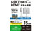 ●コネクター形状1:USB Type−C(TM)プラグ ●コネクター形状2:HDMI(R)ポート(タイプA・19ピン)、USB Type−Cポート(充電専用) ●対応機器:USB Type−Cプラグ側:DisplayPort(TM) Alt Mode対応USB Type−Cポート搭載のスマートフォン・タブレットおよびパソコンなど ●対応機器:HDMIポート側:HDMIケーブル/ディスプレイ・プロジェクターなど ●対応機器:USB Type−Cポート側:USB Type−Cケーブル/AC充電器など ●対応解像度:最大4K(3840×2160px)/60Hz ●USB Power Delivery対応:○ 最大入力100W(20V/5A)、最大出力95W ●ケーブルタイプ:ノーマルタイプ ●ケーブル長:約0.15m ※コネクター含まず ●ケーブル太さ:約4.3mm ●外形寸法:幅約46mm×厚み約11.5mm×高さ約41mm(アダプター部分) ●カラー:シルバー ●パッケージ形態:紙箱 ●環境配慮事項:EU RoHS指令適合(10物質)、THINK ECOLOGYマーク