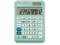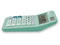 キー部分に抗菌素材を使用した淡いミントブルーの電卓です。