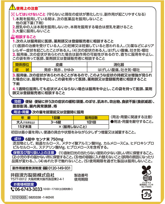 左記、使用上の注意(禁忌)を必ずご確認ください。使用上、ご不明な点がある場合は医師、薬剤師または登録販売者にご相談ください。