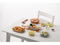 蓋は強化ガラスなので安定して積み上げることができ、すっきり収納できます。
