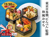 1699年創業の東京・日本橋に本店を構える鰹節専門店「にんべん」が監修したおせち。「にんべん」のだし汁を使って炊き上げた穂付筍や寿高野豆腐などを詰合せたおせちです。●軽減税率8%