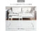 美しいガラス天板のテーブルと棚付き木製テーブルは重ねたり切り離したり、自由なレイアウトが可能です。