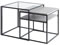 美しいガラス天板のテーブルと棚付き木製テーブルは重ねたり切り離したり、自由なレイアウトが可能です。