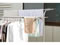 エンドキャップのひも通し穴にひもを通して固定することで、物干し竿の落下を防止します。伸縮タイプで使いやすい長さに変えられます。梱包サイズがコンパクトで持ち帰りに便利です。洗濯物が風で片寄らないハンガー掛けが付いています。
