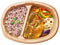●原材料:野菜(ピーマン、にんじん、玉ねぎ、えだまめ、しょうが)、精白米(国産)、あじ竜田揚げ[あじ、衣(でん粉、小麦粉)、しょうゆ、しょうが、砂糖、みりん]、揚げなす、れんこん水煮、しょうゆ、押麦、みりん、醸造酢、砂糖、醸造調味料、植物油脂、黒米(国産)、和風だしの素、香味食用油、オイスターソース、もち麦加工品、食塩、ショートニング、発芽玄米(玄米(国産))、もちあわ、もちきび/増粘剤(加工でん粉、キサンタンガム)、調味料(アミノ酸)、乳化剤、酸化防止剤(ローズマリー抽出物)、香辛料抽出物、(一部に小麦・ごま・大豆を含む)