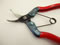 切れ味抜群:近正独自の理想的な刃付角度で強くて鋭い切れ味に仕上げました。深く窪んだ軸を一発切り:より深く窪んだ軸のある柿や梨、トマトなどの果物や野菜を一発カットで収穫できるように開発した極曲刃です!果実に優しい先細丸刃:より深く果実に近づいて切ることが多くなるため、刃先を細く、そして丸い先端にして収穫物を傷つけないようにしました。