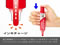 ●線幅呼称:中字、筆記線幅:2.1mm ●インキ色:赤 ●インキ成分:アルコール系油性顔料 ●機構:生インキ、プッシュリフレッシュ方式(後部プッシュ式)、キャップ式(キャップ安全性:ISO規格適合)