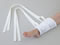 ●幅(腿側/足首側)×高さ(mm):430/380×200●入数:1組(2本入)●材質:本体表地/綿100%、中綿/ポリエステル100%、ベルト/アクリル100%、面ファスナー/ナイロン100%、金具/アルミ●洗濯方法:洗濯可、乾燥機不可●ひも長:1780mm●型番:AY−H●※施設・病院向きの商品です。在宅での使用はできません。