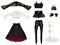 ブラックを基調としたファッションにレーシーなベレー帽とコルセットベルト付き。ハンドバッグの真っ赤なバラをコーディネートのアクセントに。真っ赤なリップとはねあげのキャットラインメイクでゴシックノワールスタイルの完成。ホワイトのトップスに着替えてホワイト×ブラックのクラシカルなスタイルにもチェンジ可能です。