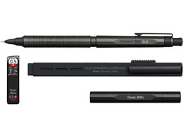 ぺんてる オレンズネロ 0.3mm カーボンブラック軸 金属替芯ケース付