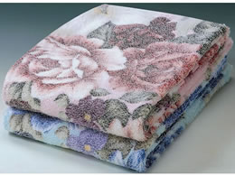 ファミリー・ライフ 花柄おぼろ調プリントタオルケット 2色組 a32995