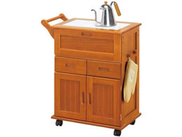 ファミリー・ライフ 天然木フラップ式キッチン収納ワゴン 03562