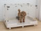 ●色:ミルキーブラウン●適合犬サイズ(目安):中型犬用●外寸(約):幅916×奥行636×高さ603mm(キャスター込)●内寸(約):幅850×奥行565×高さ525mm●適合シーツ:ダブルワイドサイズ●重量:約9.6kg●材質:パネル/スチール(エポキシ粉体塗装)、ドアロック・バックル/ABS樹脂、ジョイント/ポリプロピレン・ABS樹脂、トレー/ポリプロピレン●キャスター付き
