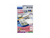 ●仕様:33面光沢白無地フィルム●面付:3列×11段●サイズ:はがきサイズ(100×148.5mm)●1片サイズ:24×8mm●材質:ポリエステルフィルム●標準総厚み:0.27mm●ラベル厚み:0.10mm●対応プリンタ:インクジェット(染料インク)●注文単位(入数):1冊(4シート)●水に強いタイプ※食器などの直に口に触れる部分には貼らないでください。