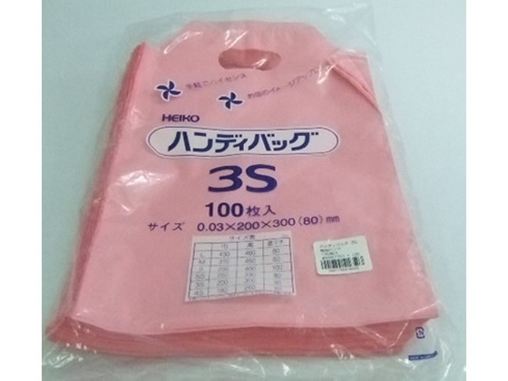 ヘイコー 手提げポリ袋 ハンディバッグ 3Sサイズ 無地ピンク 100枚