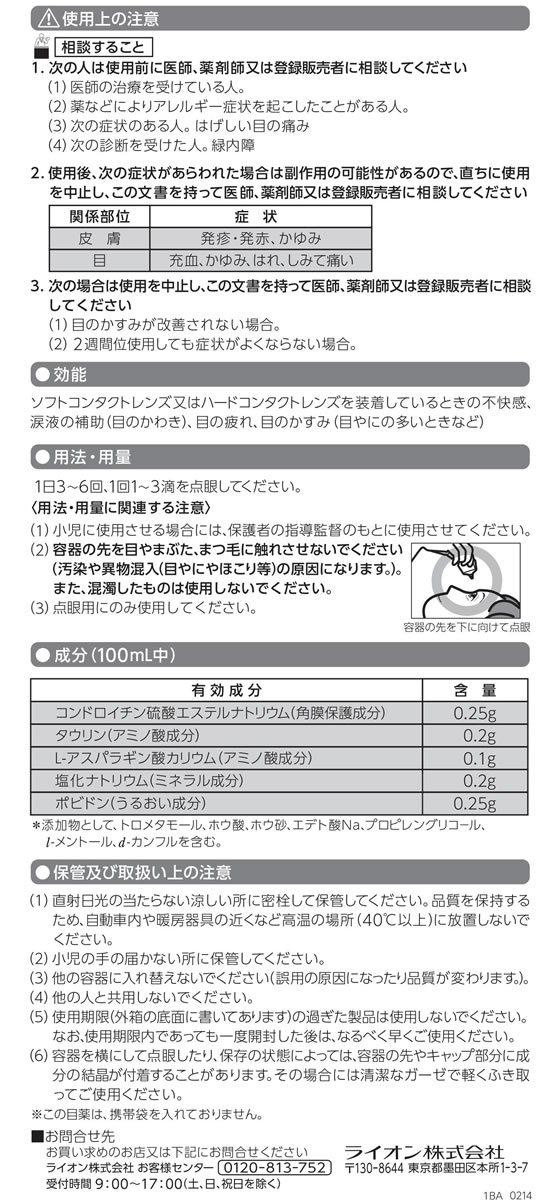 ソフトコンタクトレンズ又はハードコンタクトレンズを装着しているときの不快感、涙液の補助(目のかわき)、目の疲れ、目のかすみ(目やにの多いときなど)