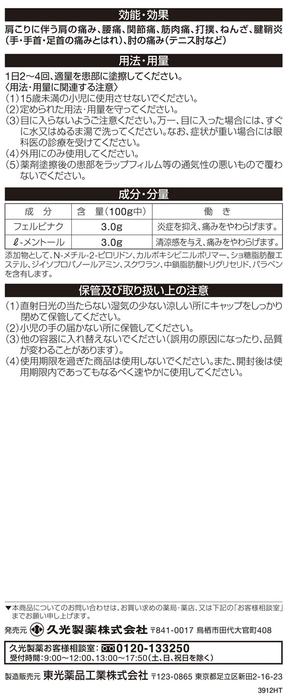 ●「フェルビナク」は痛みに関係する物質(プロスタグランジン)の生成を抑え、肩・腰・関節・筋肉の痛みにすぐれた効き目をあらわします。