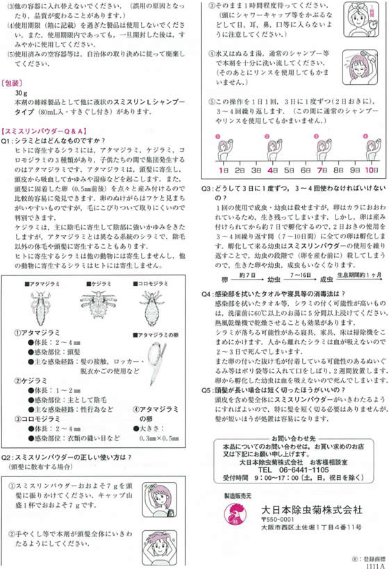 人体に安全性の高いピレスロイド系フェノトリンを使用したシラミ専用の駆除剤。アタマジラミやケジラミに効果があります。