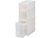 ●色:ホワイト●外形寸法(mm)間口:170●外形寸法(mm)奥行:450●外形寸法(mm)高さ:850●有効内寸(mm)間口:110〜130●有効内寸(mm)奥行:400●有効内寸(mm)高さ:230●耐荷重(kg):24●段数(段):3●引き出しサイズ:スリムM×3個●耐荷重(kg/段):7●天板耐荷重(kg):3●完成品●ワゴン(別売)1個まで連結可能●引き出し内寸(間口×奥行×高さ):110〜130×400×230mm(Mサイズ)●容量:12.7リットル(引出しスリムMサイズ)●収納目安:500mlペットボトル・洗濯剤ボトル・レトルト箱・DVDソフトなど(引出しスリムMサイズ)●ポリプロピレン(PP)●内側・外側にセット可能な小物ポケット(1個)●底面4か所に取り付け可能な簡易キャスター(4個)●底面2か所に取り付け可能な脚(2個)●ストッカー5段タイプはワゴンとの連結は不可です。