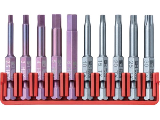 ●精密ビット、形状E 6.3(1/4″)●便利なBitBlock付きセット●10個(セルフサービスパッケージ入り)●六角ソケットねじ、トルクス[[R上]] ねじ用●無心焼入れ、特殊工具鋼、防錆用のプラズマコーティング