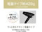 軽量タイプ※500g以下の当社製品。風量:1.3立米/分※TURBO使用、ノズル無しの時、測定方法は、 JIS C 9613に基づく。マイナスイオン髪にマイナスイオンをたっぷり届けます。ほこりが取りやすいメッシュフィルター採用。2スピード温風切替。