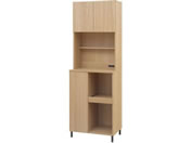 ●カラー:ナチュラル/ブラック ●商品サイズ:約幅595×奥行297×高さ1200mm ●商品重量:約16.8kg ●耐荷重:全体約50kg、上天板約5kg、棚板約5kg、可動棚板1枚あたり約5kg、天板約20kg、底板約10kg ●上天板サイズ:約595×195mm ●棚板サイズ:約556×187mm ●天板サイズ:約595×297mm(物が置ける範囲:約557×297mm) ●配線開口部サイズ:約200×20mm ●棚板の間隔:約276mm(※棚板を可動部下に設置した場合) ●扉内収納内寸:約幅559×奥行247×高さ583mm ●扉内可動棚サイズ:約558×234mm ●主要材質:天板/合成樹脂化粧パーティクルボード(メラミン樹脂)、背板/プリント紙化粧繊維板、その他板/プリント紙化粧パーティクルボード、金属部分/金属(鋼)(エポキシ樹脂塗装)