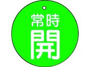 ●色:緑●表示内容:常時開・緑地(白文字)●縦(mm):50●横(mm):50●厚さ(mm):2●取付仕様:穴1ヵ所●4mmφ穴上部1ヵ所●両面表示●5枚1組●取付具は別売です。