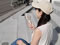 ネックストラップ付きハンズフリーでも使える。