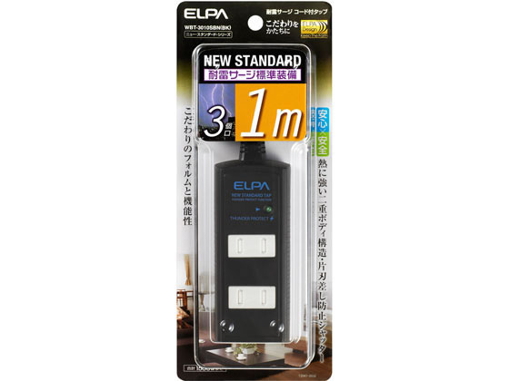 朝日電器 耐雷コード付タップ 2P3個口1m WBT-3010SBN(BK)
