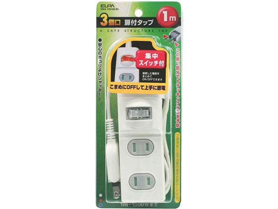 朝日電器 スイッチ付扉付タップ 2P3個口 1m WBS-T3010B(W)
