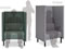 スマホやPCの充電に便利なコンセント付き。背面と両側面に頭上までしっかりカバーするパネルを取り付けた1人用のブース型ソファです。ソファは座幅720mmで肘を広げても余裕のあるゆったりサイズ、固めのクッションで沈み込みが少なく立ち上がりやすい仕様です。両側のパネルは座面より奥行きがあり横からの視線も気になりにくい設計。パネル部分もウレタン入りファブリック仕上げでソフトな感触、包み込まれるような居心地。