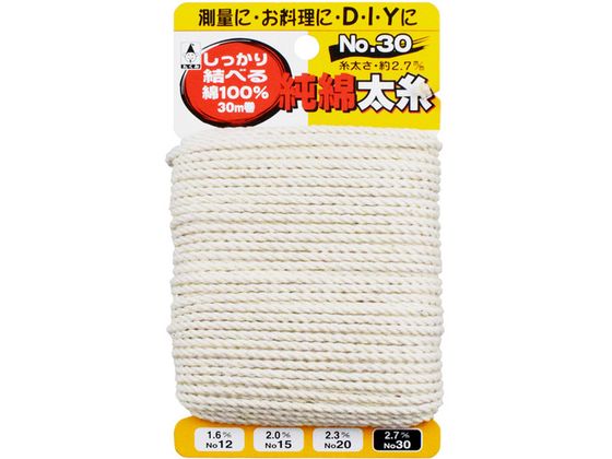 ●色:生成り色●糸長さ(m):30●線径(mm):約2.7●カードサイズ(mm):154×90●カード巻●糸:綿●幼児の手の届かないところで使用、保管してください。●糸を手や歯で切るとけがをする恐れがあります。●糸を火で切らないでください。●用途以外には使用しないでください。●製造上、糸に継ぎ目が入る場合があります。
