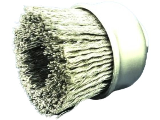 毛材の広がりに配慮しワイヤーの根元を傷つけない折損防止金具構造になっています。毛材密度、波形状、トリムが最適のバランスで製作されています。高いバランス基準で製品化しておりますので、腕への振動が少なく作業疲労が軽減されます。硬鋼線を亜鉛メッキしてヨリ加工をした毛材です。強力な研削力と耐折損性に優れています。