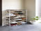 玄関スペースや靴の量に合わせて横幅を調整可能。見せる収納でおしゃれな空間を演出。シューズラックを2段重ねることも可能。スタッキングの際は付属の連結パーツを左右のフレームに2個ずつ取り付けてしっかり固定。男性のシューズなら最大約12足、女性のヒールなら最大約16足収納可能。