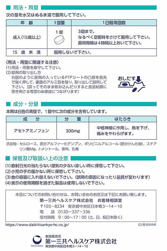 ●解熱鎮痛成分「アセトアミノフェン」が、中枢神経系に速やかに作用し、すぐれた鎮痛・解熱効果を発揮します。