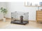 トレーにはサークルのガタツキを防ぐバックルと床傷を防止するゴム脚が付いています。高級感のあるマットな質感でインテリアにぴったりなデザインです。開け閉めラクラクのスライドドア仕様です。移動に便利なキャスター付きです。