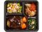 ●原材料:ハンバーグソースがけ(ハンバーグ(国内製造)(食肉(牛肉、豚肉)、たまねぎ、パン粉、豚脂、牛脂、ソテーオニオン、鶏卵、砂糖、しょうゆ、でん粉、食塩、牛乳、卵殻粉、香辛料、トマトペースト、にんにくペースト、酵母エキスパウダー、たん白加水分解物、野菜エキスパウダー、ゼラチン)、デミグラスソース、たまねぎ、ワイン、マーガリン、牛乳、デキストリン、コンソメパウダー、トマトペースト、トマトケチャップ、砂糖、ウスターソース、酵母エキスパウダー)、味付鶏肉のサラダ(野菜(えだまめ、コーン、たまねぎ、ピーマン)、味付鶏肉(鶏肉、たまねぎ、食塩、でん粉、粉末卵白)、酢、砂糖、レモンジュース、にんにくペースト、しょうゆ、香辛料)、たらのトマトソースがけ(すけとうだら、トマト・ピューレーづけ、たまねぎ、トマトケチャップ、トマトペースト、植物油脂、コンソメパウダー、にんにくペースト、食塩、砂糖、香辛料)、ほうれん草とまぐろ油漬けの和え物(ほうれん草、まぐろ油漬け、香辛料)、鶏肉加工品(鶏肉、しょうゆ、植物油脂、糖類(砂糖、ぶどう糖)、粉末卵白、食塩、米粉)、にんじん/増粘剤(加工でん粉)、着色料(カラメル)、加工でん粉、調味料(アミノ酸等)、酢酸Na、リン酸塩(Na)、キシロース、重曹、クエン酸Na、グルコン酸Na、炭酸K、香料、(一部に小麦・卵・乳成分・牛肉・大豆・鶏肉・豚肉・りんご・ゼラチンを含む)