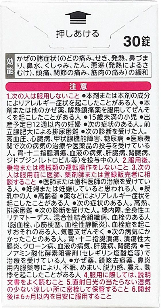 かぜの諸症状(のどの痛み、せき、発熱、鼻づまり、鼻水、くしゃみ、たん、悪寒(発熱によるさむけ)、頭痛、関節の痛み、筋肉の痛み)の緩和