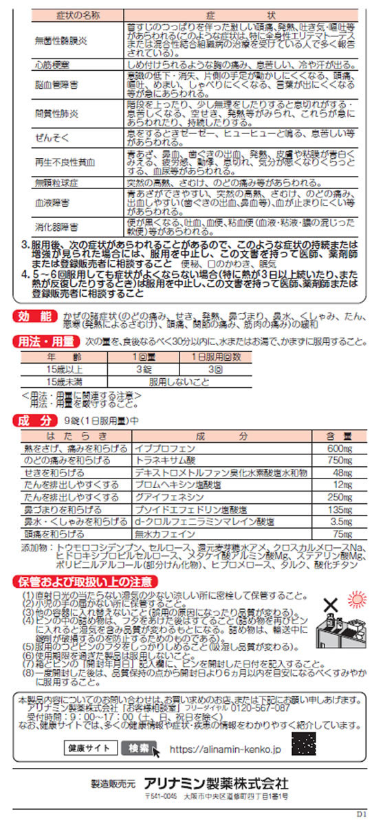 かぜの諸症状(のどの痛み、せき、発熱、鼻づまり、鼻水、くしゃみ、たん、悪寒(発熱によるさむけ)、頭痛、関節の痛み、筋肉の痛み)の緩和