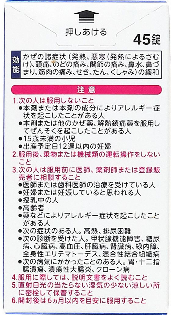 かぜの諸症状(発熱、悪寒(発熱によるさむけ)、頭痛、のどの痛み、関節の痛み、鼻水、鼻づまり、筋肉の痛み、せき、たん、くしゃみ)の緩和