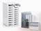 20台のスマートフォンを個別に管理できる保管庫です。ダイヤル錠+検索キー方式で鍵紛失の心配がなく、番号を忘れても管理者が開錠可能です。使用者は任意の番号を設定可能で管理性に優れています。背面にはタップ収納スペースとケーブル口を備え、収納したまま充電ができます。アクリル製ネームプレートで識別しやすく、上下左右に連結可能で拡張性もあります。アジャスターやセキュリティワイヤー用フックも装備しています。