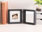 スタイリッシュな木製フレーム。玄関や化粧台、どんな部屋にも相性良し。鏡付きの2面フレーム。どこにでも置きやすいコンパクトなサイズ。写真が映えるマット付き。