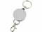 ●材質:本体:鉄 クリップ:鉄 ワイヤー:ステンレススチール(ナイロンコーティング) キーホルダー:亜鉛合金 リング部:鉄・亜鉛合金 ●製品サイズ:φ40×113×13mm●重量:70g●許容重量:50g以下●伸長:約120cm