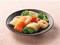 ●原材料:ブロッコリー(エクアドル産)、にんじん、えび(えび、食塩)、れんこん、つゆ(しょうゆ、みりん、砂糖、その他)、ホタテ、たけのこ水煮、ごま油、おろししょうが、食塩、ホタテエキス、砂糖、酵母エキス/増粘剤(キサンタン)、トレハロース、調味料(アミノ酸等)、pH調整剤、酵素、酸化防止剤(V.C、フェルラ酸)、酒精、(一部にえび・小麦・ごま・大豆を含む)