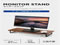 ●対応サイズ:〜27インチディスプレイ ●耐荷重:10kg ●サイズ:幅約590mm×奥行約260mm×高さ約82mm ●質量:約1.62kg ●カラー:ウォールナット ●材質:パーチクルボード、スチール ●その他:ディスプレイスタンド下部内寸:幅約505mm×奥行約260mm×高さ約70mm