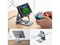 スタイリッシュなアルミ製のタブレットスタンドです。2つのヒンジにより使用環境に合わせて見やすい角度に調整でき、折りたたんでコンパクトに持ち運べます。ケースを装着したままのタブレットにも対応し、接触部にはキズ防止ゴムパッドを備えています。丈夫なアルミ素材と底面の滑り止めラバーにより、操作時も安定して使用できます。背面には充電ケーブルを通せるケーブルホールを搭載しています。